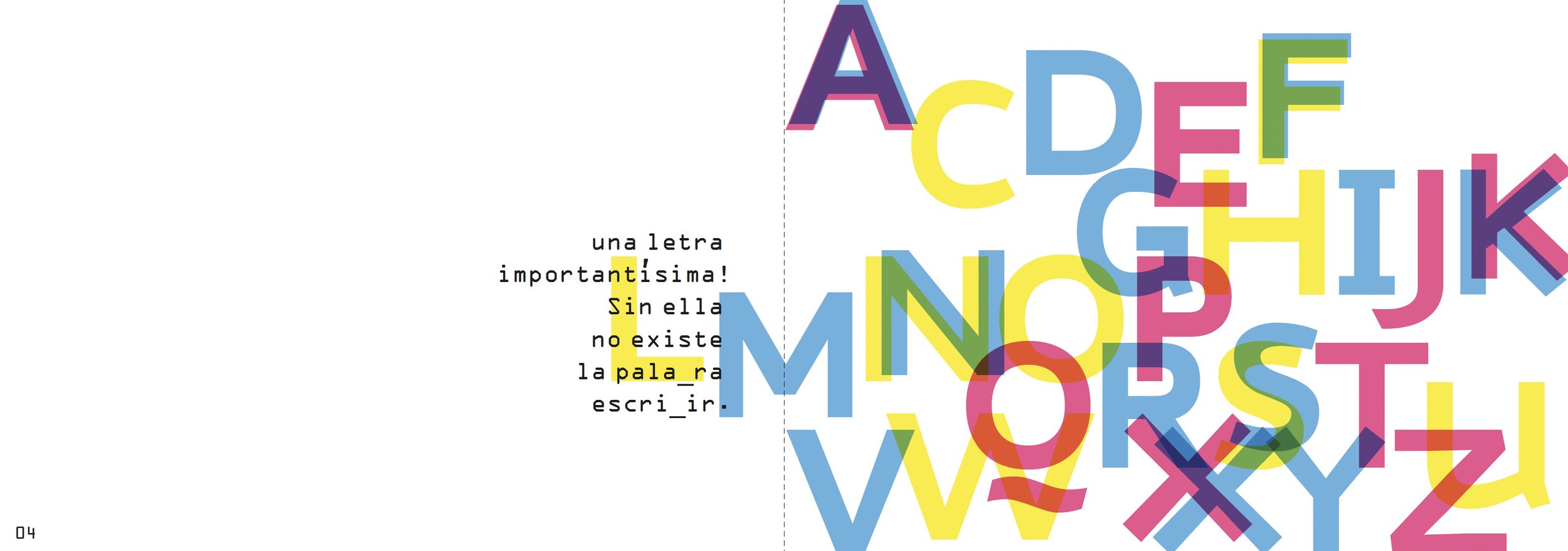 La letra _ desaparece es un poema sobre letras que desaparecen del teclado. Un juego gráfico donde los colores primarios se mezclan para formar otros colores al igual que las letras conforman palabras. La ausencia de la letra B ayudaría al niño a conocer el resto del abecedario y también otras nociones como la ausencia...